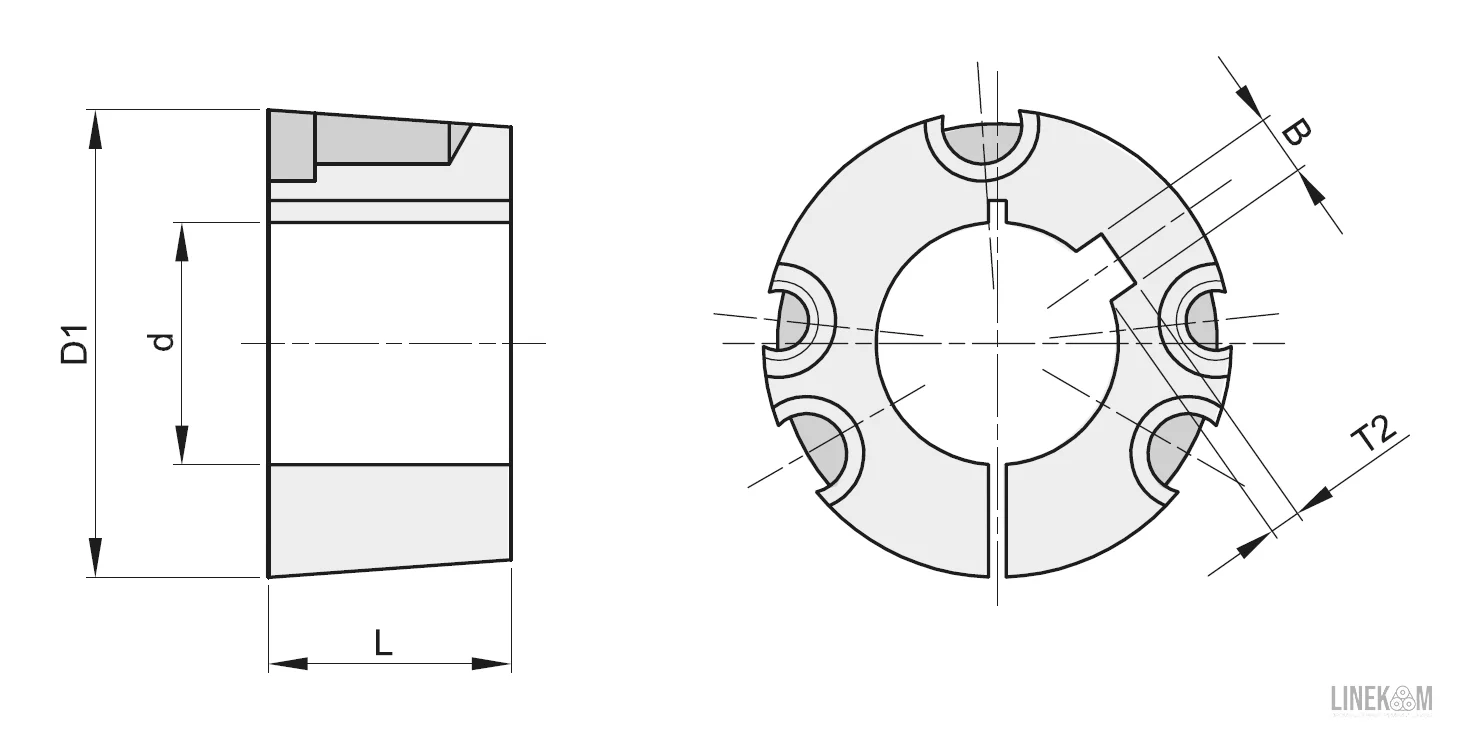 | Ширина шпоночного паза втулки: | B | 20 | |