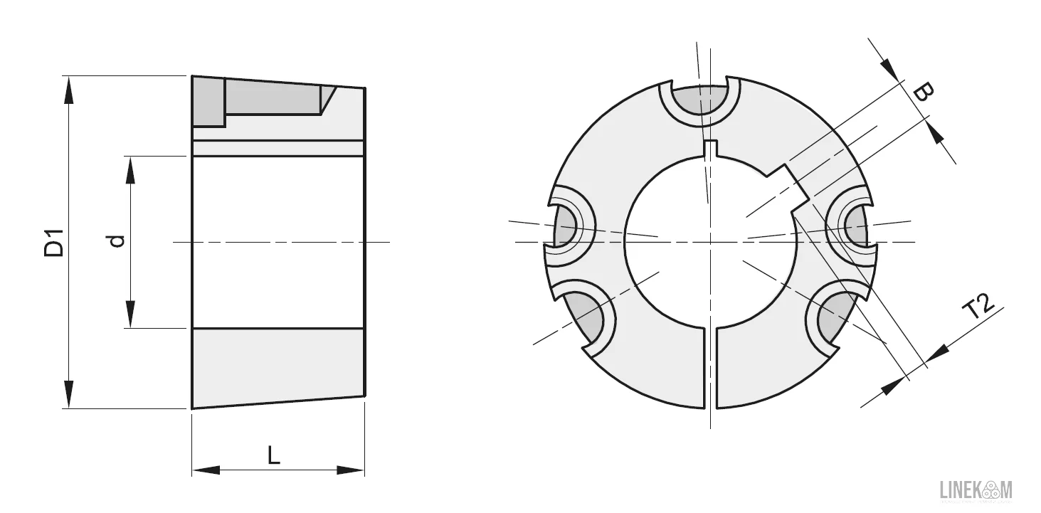 | Высота шпоночного паза втулки: | T2 | 4.3 | |
