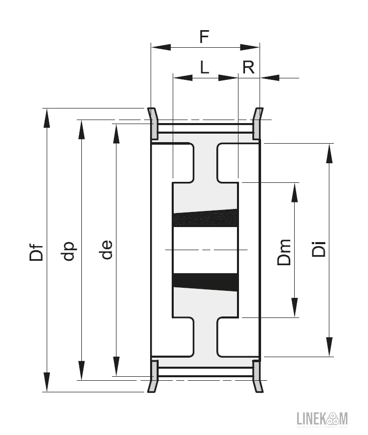 | Наружный диаметр шкива: | dp | 194.04 | |
