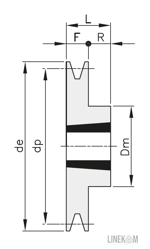 | Ширина со ступицей шкива: | L | 25 | |